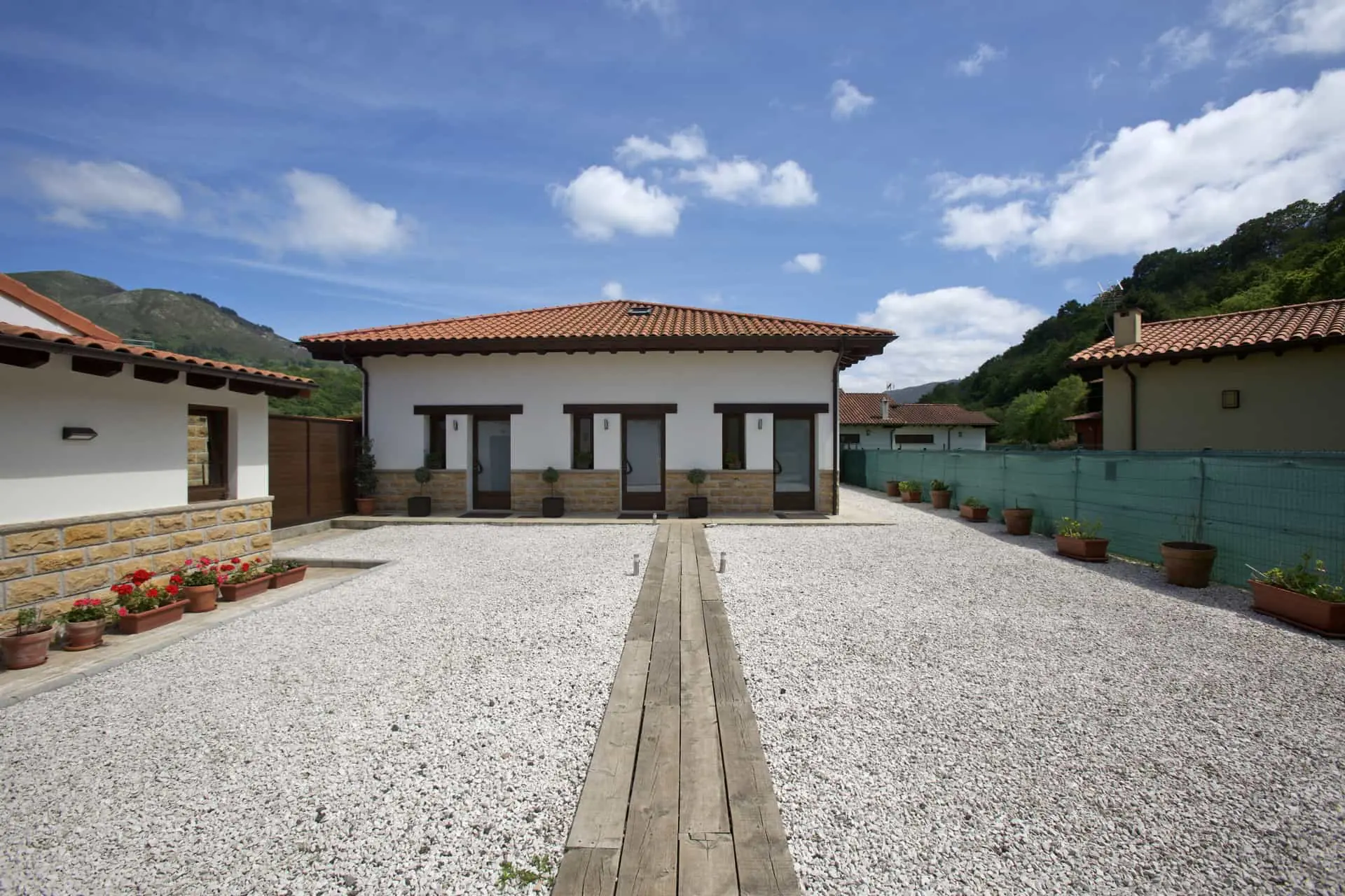 Categoría: 3 llaves | Plazas: 50 | Capacidad: 10 apartamentos: 4-5 pax | Alojamientos | Cangas de Onís | Los apartamentos Camín de Pelayo se encuentran en la pequeña aldea de Las Rozas, a 4 km de Cangas de Onís (capital del concejo o municipio del mismo nombre y primera capital del Reino de Asturias), y su jardín está bañado directamente por el río Sella. Se trata de una construcción nueva, pero inspirada en la arquitectura tradicional. Los 10 apartamentos, todos de planta baja, se articulan en torno a un gran