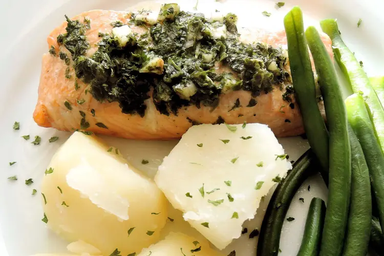 Cocina asturiana | Castropol | Preparación: Se fríe el salmón, después de sazonarlo de sal y cortarlo en rodajas, con aceite caliente; a continuación se unta cada rodaja por los dos lados con mantequilla, se colocan éstas en una cazuela refractaria, se les agrega una copa de champán o sidra y se ponen a horno fuerte durante un cuarto de hora. Ría y mar, costa y montaña, Reserva Natural, ostras y deporte, puertos deportivos y astillero, ga