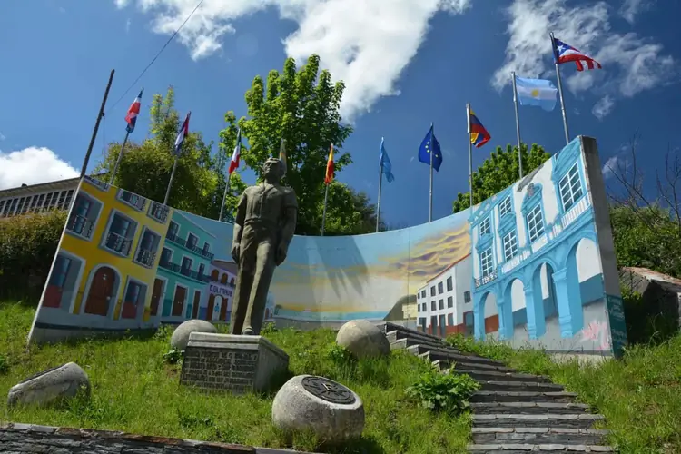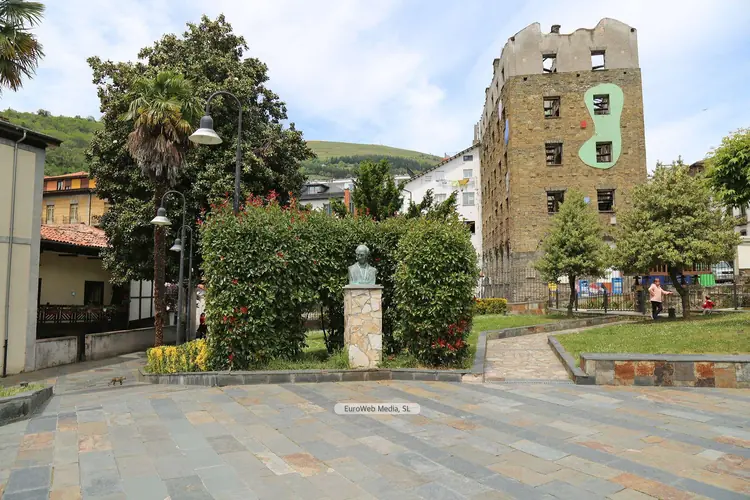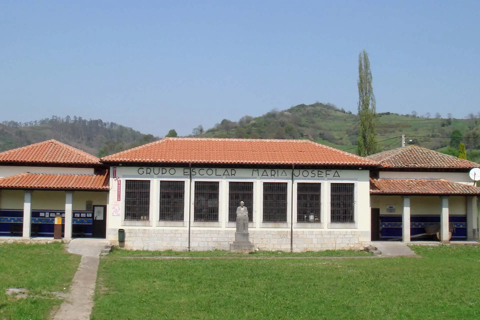 Esculturas | Grado | Un impresionante busto del indiano Adolfo Prieto y Álvarez de las Vallinas, obra del prestigioso escultor Víctor Hevia Granda, preside la escuela de Sama de Grado, sita en el pueblo de La Vega. Sobre un altísimo pedestal se nos muestra la figura muy realista de un hombre maduro, con traje y porte impecables. De sus facciones destacan una poderosa nariz y una frente prominente; sus grandes manos sujetan un documento a buen segur