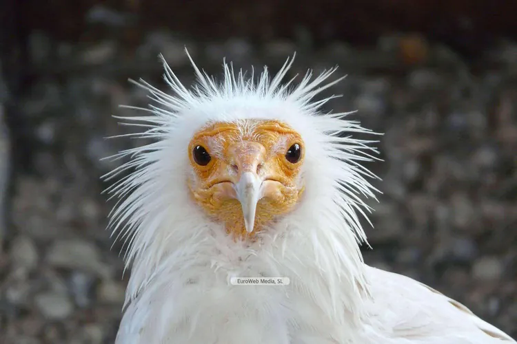 Flora y fauna | Siero | Localización: Peña Careses - Vega de Poja. Descripción: El alimoche es un pájaro de menor tamaño que el buitre y de plumaje blanco, excepto los bordes inferiores de las alas, que son negros. La cola, que también es blanca, tiene forma de cuña, lo que en vuelo de planeo lo hace inconfundible. La cabeza y el cuello son amarillentos y, como carecen de plumas, le dan un aspecto desagradable. El pico, fuerte y ganchu