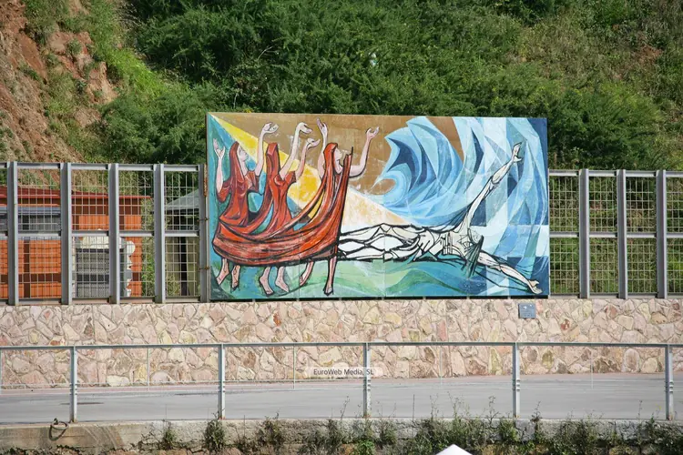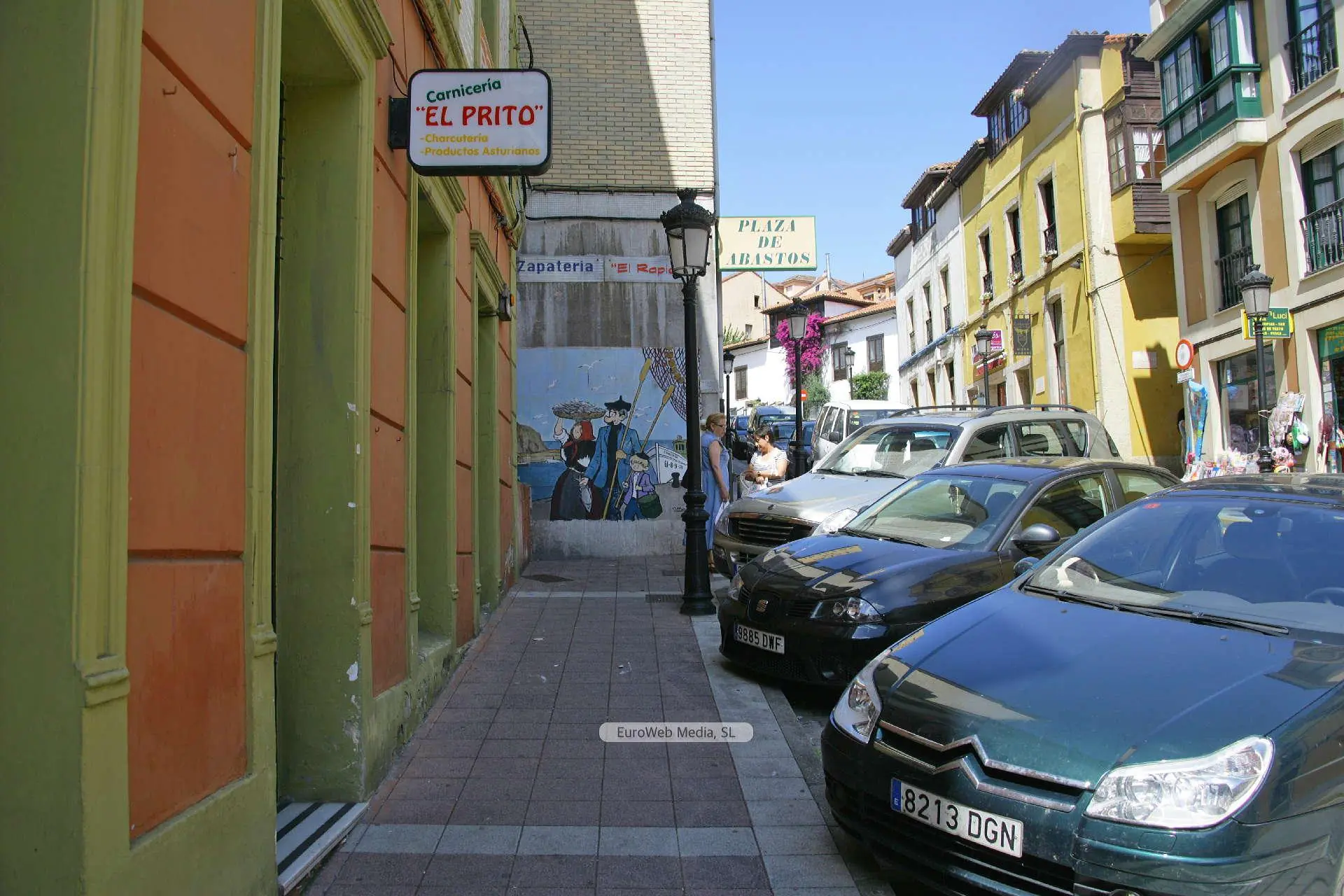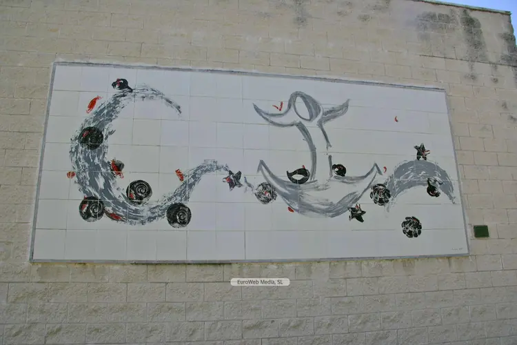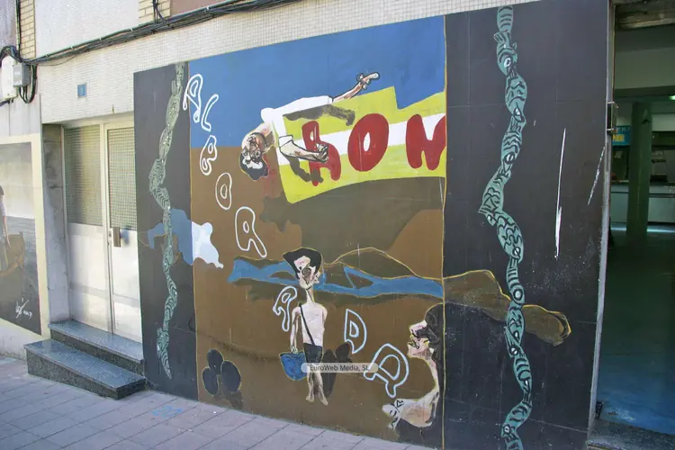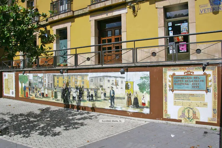 Patrimonio civil | Carreño | Ubicación: C/ Ramón y Cajal, exterior de la Plaza de Abastos. Año: 1979. Medidas: 2,36 x 2 metros. Autor: Alfonso Iglesias López de Vívigo, «Alfonso Iglesias» (Navia, 1910 - Oviedo, 1988). Comienza estudios de Arquitectura y más tarde se licencia en Ciencias en la Universidad de Oviedo, carrera que abandonará a partir de 1931 para dedicarse al humor gráfico. Sus primeros dibujos aparecieron en los