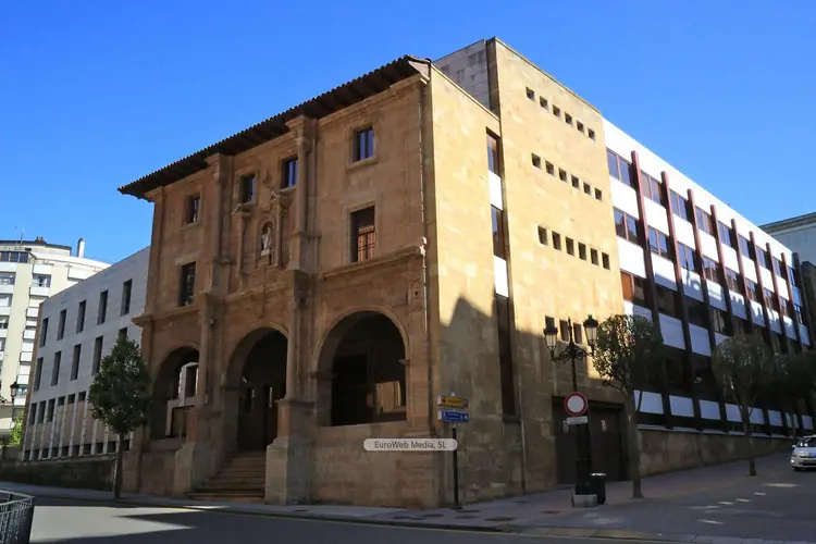 Patrimonio religioso | Oviedo | Hoy sede de la Academia de la Llingua Asturiana. A la empinada calle del Aguila da la fachada posterior del monasterio de San Pelayo o de las Pelayas, monjas de clausura. Frente al torno abría sus puertas la sede del antiguo Achivo Histórico de Asturias, que comparte con el convento el portón, de gran tamaño, enmarcado con molduras y semiborrado escudo imperial, cuyo águila bautiza la citada calle. El Archivo ocupaba buen