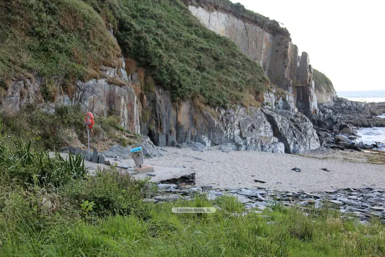 Playas | Tapia de Casariego | Características. Ocupación: Alta. Longitud aproximada: 150 m (junto a la de Los Campos 250 m) Accesos: Rodados. Servicios: Aparcamiento: Sí. Socorrismo: No. Señalizada con banderas. Material: Arena fina. Color: Tostado. Forma: Triangular. Desembocadura fluvial: Río Anguileiro. Entorno: Urbano. Tipo de playa: Oleaje medio. Atractivos: Naturales, turísticos, recreativos y deportivos (surf, pesca deportiva y submarina).