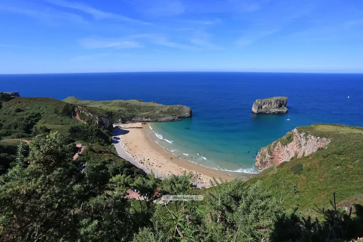 Playas | Ribadedeva | Características. Ocupación: Baja. Longitud aproximada: 200 m Accesos: A pie. Servicios: Aparcamiento: No. Socorrismo: No. Material: Arena. Color: Blanquecino. Forma: Concha. Desembocadura fluvial: Ninguna. Entorno: Rural. Tipo de playa: Oleaje medio. Atractivos: Pesqueros y paisajísticos. Peligrosidad: Media. Descripción. El arenal de El Vivero, que ocupa parte de la ensenada de Mendía, tiene acceso salvando los pedregale