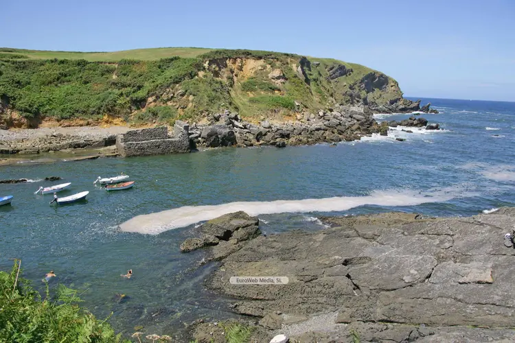 Playas | Gozón | Otra de las pequeñas playas que desaparece con la marea alta aunque en este caso concreto un muro de contención provisto de barandilla sirve para paliar la subida de la marea. Se encuentra a escasos 150 metros de la Playa de La Ribera. Tiene unos 20 metros de ancho. No es muy utilizada salvo por personas de los alrededores y para el reposo de algunas embarcaciones. Su localización y acceso es fácil. Playas y acantilados, el pa