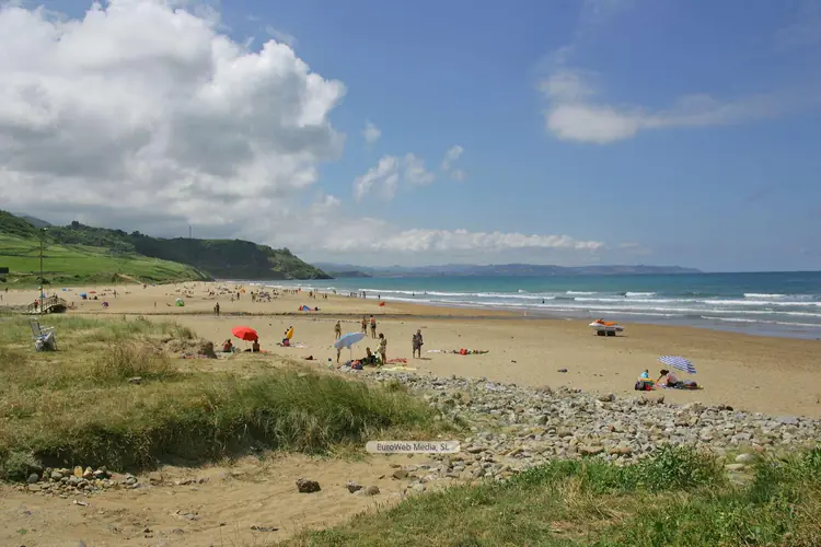 Playas | Llanes | Conocida por Playa de Cue pero también como Playa de Antilles, Playa Los Canales o Playa Salmoriera de Cué debido a las características del arenal donde cierta zonas tienen nombre propio pero desconocido para la mayoría excepto los lugareños. La playa de Cue asume la tipología de una concha con tómbolo, enlazada a la Islona o isla Grande por medio de una franja de arena. Cuando la marea está baja, se torna