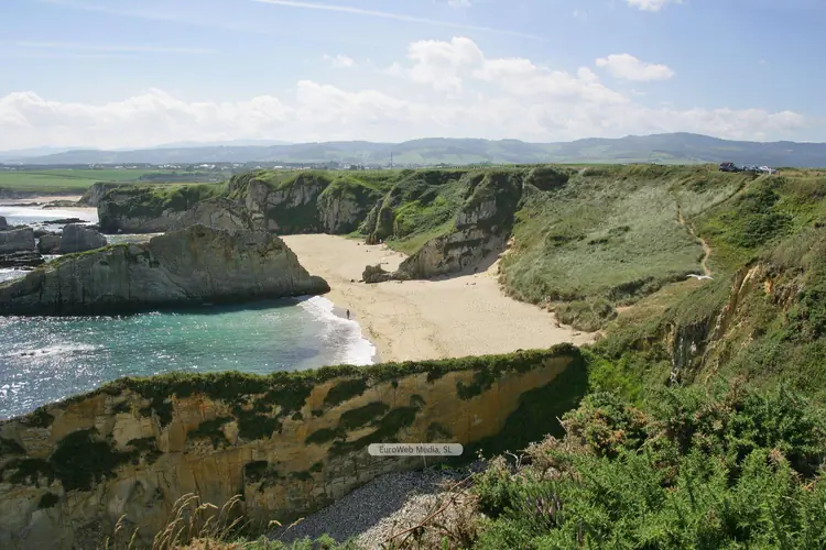 Playas | Valdés | CARACTERÍSTICAS GENERALES. Nombre de la playa: Playa Castiel Descripción: Cala encajada entre acantilados a la que se accede difícilmente, lo que hace que prácticamente no sea utilizada por los bañistas. Longitud: 50 metros Anchura: 37 metros Variación de la anchura: Mucha Grado de ocupación: Bajo Grado de urbanización: Aislada Paseo marítimo: No Fachada del litoral: Acantilado Tipo de paseo marít