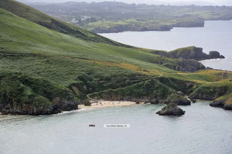 Playas | Llanes | Conocida por Playa de Cue pero también como Playa de Antilles, Playa Los Canales o Playa Salmoriera de Cué debido a las características del arenal donde cierta zonas tienen nombre propio pero desconocido para la mayoría excepto los lugareños. La playa de Cue asume la tipología de una concha con tómbolo, enlazada a la Islona o isla Grande por medio de una franja de arena. Cuando la marea está baja, se torna